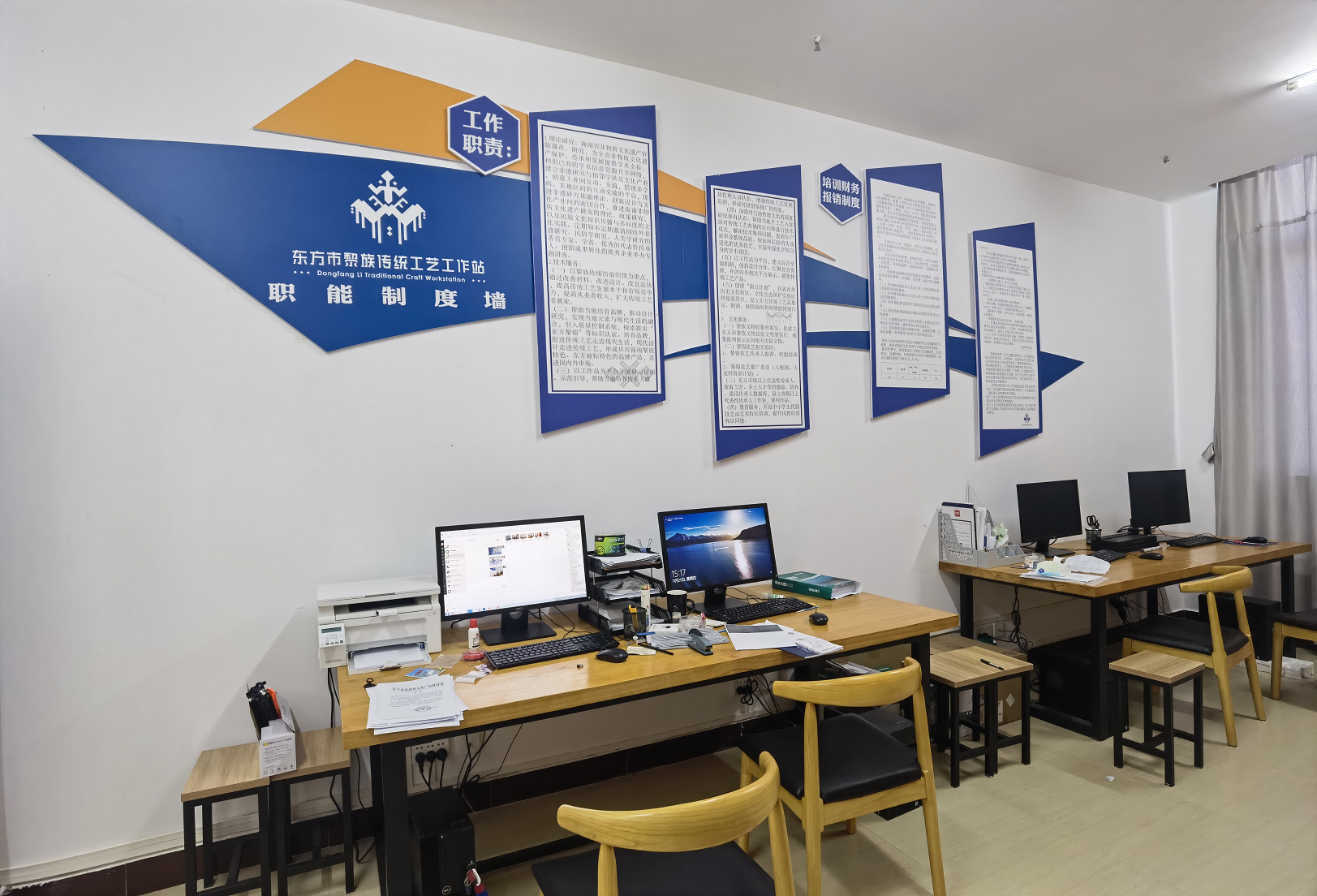 场所:东方市黎族传统工艺工作站办公使用面积约为550平方米,集理论研究、创新设计、综合展示、多功能教室等多种功能于一体。二、三楼为黎族文化收藏馆;四楼拟建立非物质文化遗产技艺大师工坊及体验馆;五楼现有托东方市黎族传统工艺工作站,挖掘整理黎族文化相关资料,设计制作黎族特色旅游商品及文化收藏品。
